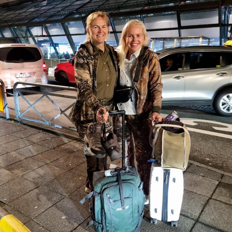 Tveir kátustu og um leið stoltustu ferðamenn í Leifsstöð að morgni 14. september 2023 voru þær Elsa og María. Kátínan stafaði af því að loksins var að hefjast draumaferðin til Eistlands að skjóta rauðhjört. Stoltið kom hins vegar til af því að þær voru báðar búnar að pakka niður fyrir fjögurra daga veiðiferð og tókst að koma öllum farangri í svo litlar ferðatöskur að þær mátti taka með í handfarangur. Eftir að þær voru komnar í gegnum öryggisleit og sestar yfir kaffibolla sagði María; ”Ég er stolt af okkur. Bara með handfarangur.” Elsa brosti brosinu, Já. Ég líka.