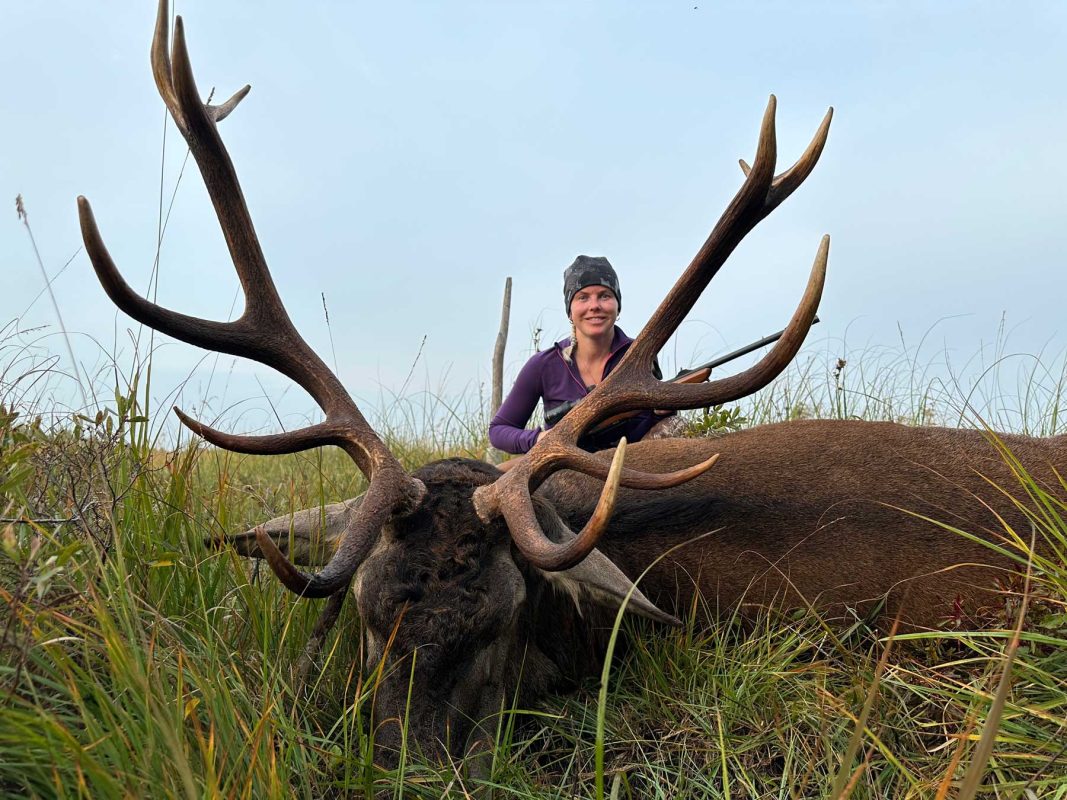 Þær eru báðar himinlifandi með túrinn. Triin er líka afskaplega sátt. „Við leggjum mikinn metnað í veiðina hér hjá okkur. Við gerum þetta af því að okkur finnst þetta skemmtilegt og með veiðinni erum við að hugsa um náttúruna. Það þarf að stýra því hversu mörg dýr geta komist vel af í skóginum. Þetta er ekki eins og maður heyrir af víða, verið að byggja upp gríðarlegar væntingar og rukka fyrir þær fyrirfram.“