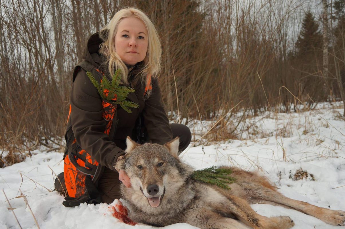 Triin brosir og andar djúpt. Það er eins og hún hafi beðið eftir þessari spurningu. ”Já. Það var svo magnað. Við vorum að skipuleggja rekstrarveiði þegar tilkynnt var um að sést hefðu sex úlfar í skóginum rétt hjá okkur. Þetta voru um áttatíu manns og allir vildu taka þátt í úlfaveiðinni. Fremur stórt svæði var merkt með rauðum veifum og veiðimenn stilltu sér upp við veifurnar. Ég var með kvikmyndatökumann og við ætluðum að gera þátt um rekstrarveiði. Við höfum gert marga slíka þætti og sýnum þá á Youtube rásinni okkar.