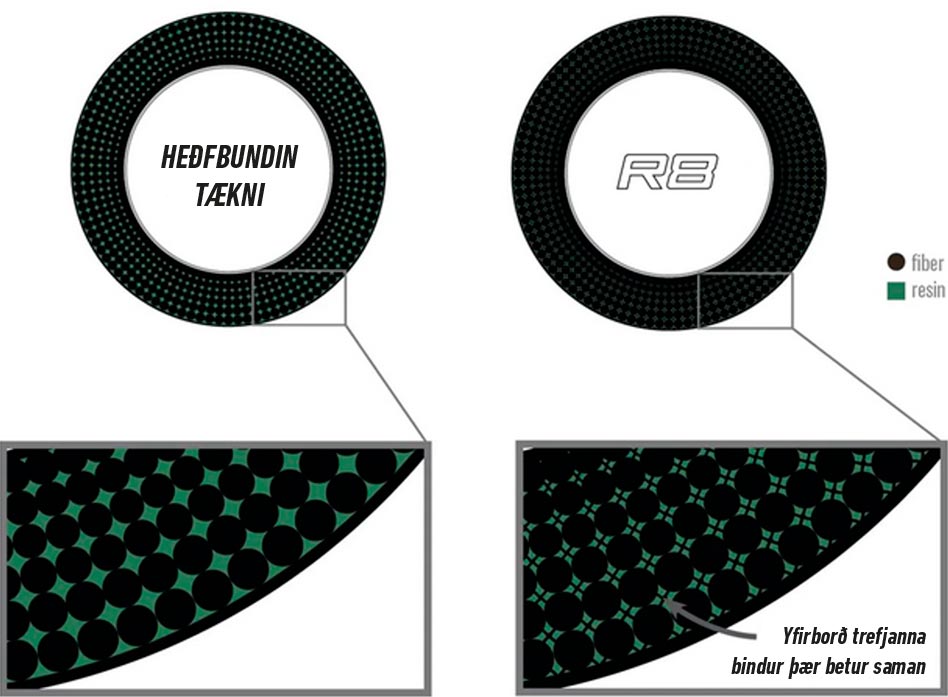 Hin nýja, byltingarkennda R8 tækni gerir okkur kleift að gera stöng með enn stífara og sterkara hryggjarstykki en um leið næmari framenda sem eykur tilfinningu veiðimanns fyrir köstunum og flugunni.