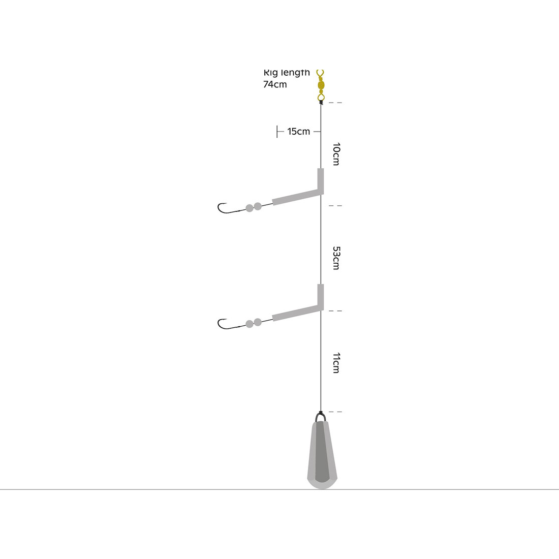 double spreader for flounder. Four sizes with 0,70mm line and #1/0 long