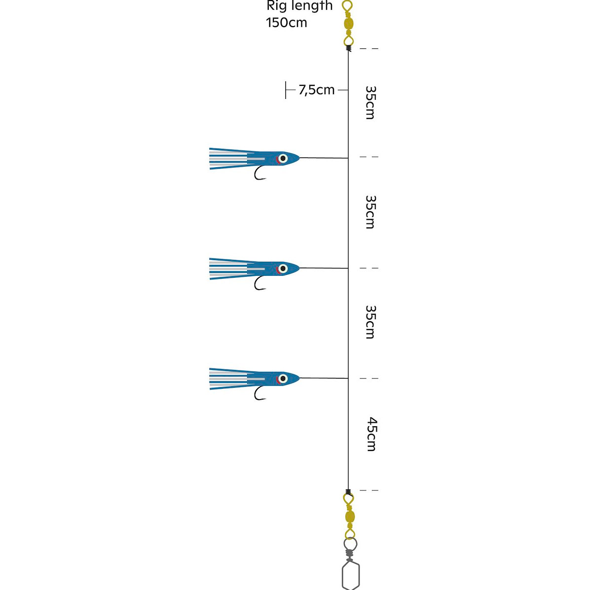 Slóðinn er 150 sm. langur með þremur 6/0 krókum.