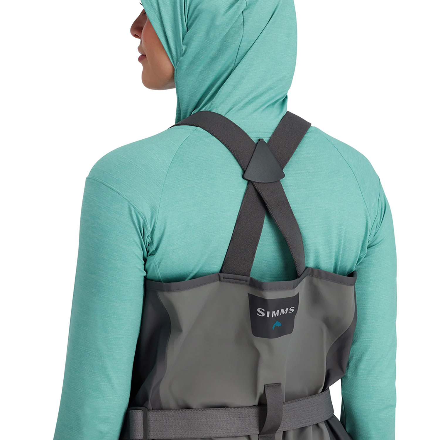 • Stretch elastic suspenders with Simms custom opposing male and female buckles